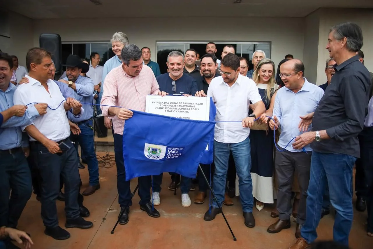 Presença do governador Eduardo Riedel e do vice-governador Barbosinha reforça o compromisso do Estado com o desenvolvimento da cidade e valoriza a trajetória pessoal e política no município
