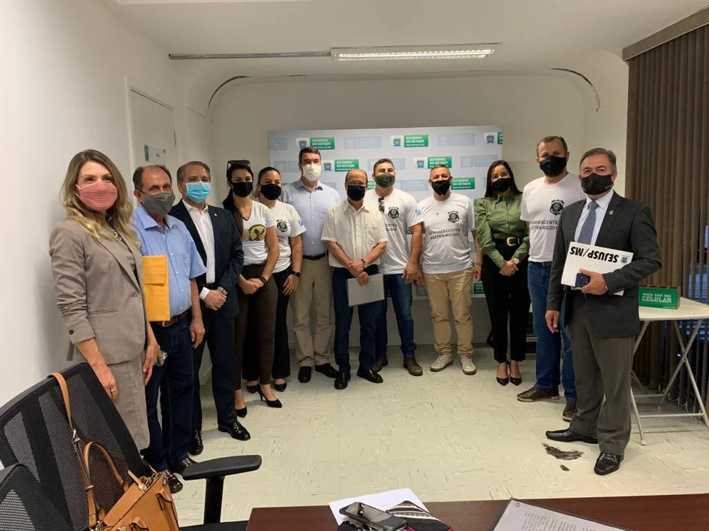 O deputado Barbosinha em uma das reuniões que teve com os secretários Riedel e Videira (Sejusp) para intermediar as convocações