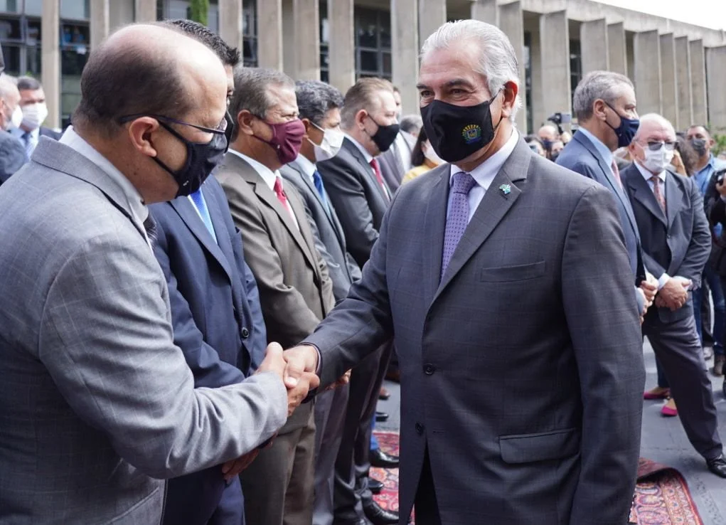 Governador Reinaldo Azambuja sendo recebido na ALEMS