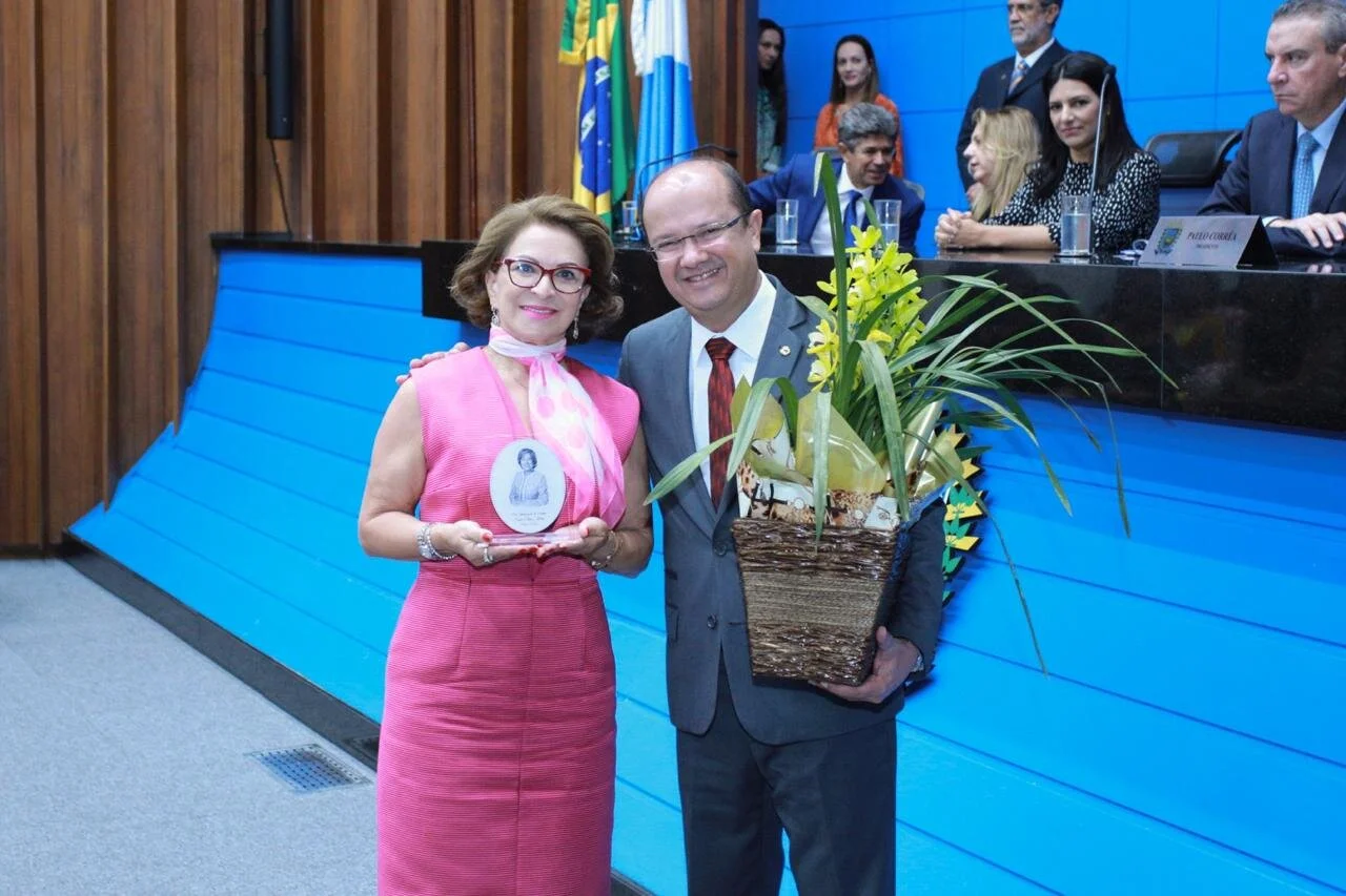 O deputado Barbosinha (DEM-MS) teve a oportunidade de homenagear a advogada e professora universitária de Dourados, Noemi Mendes Siqueira Ferrigolo com a entrega do troféu Celina Jallad.