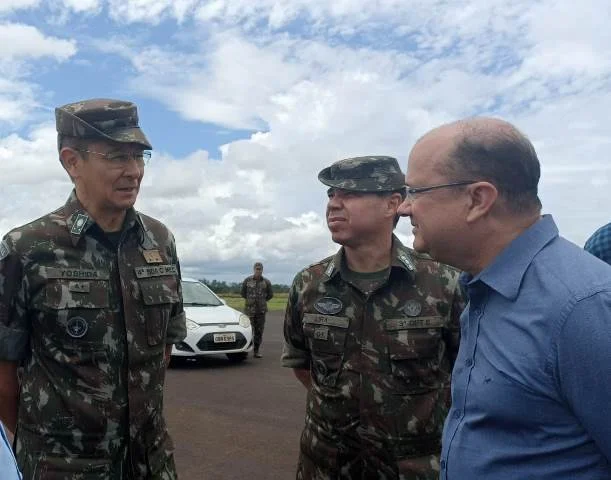 Vice-governador conversa com comandante do Exército, general Yoshida, no aeroporto