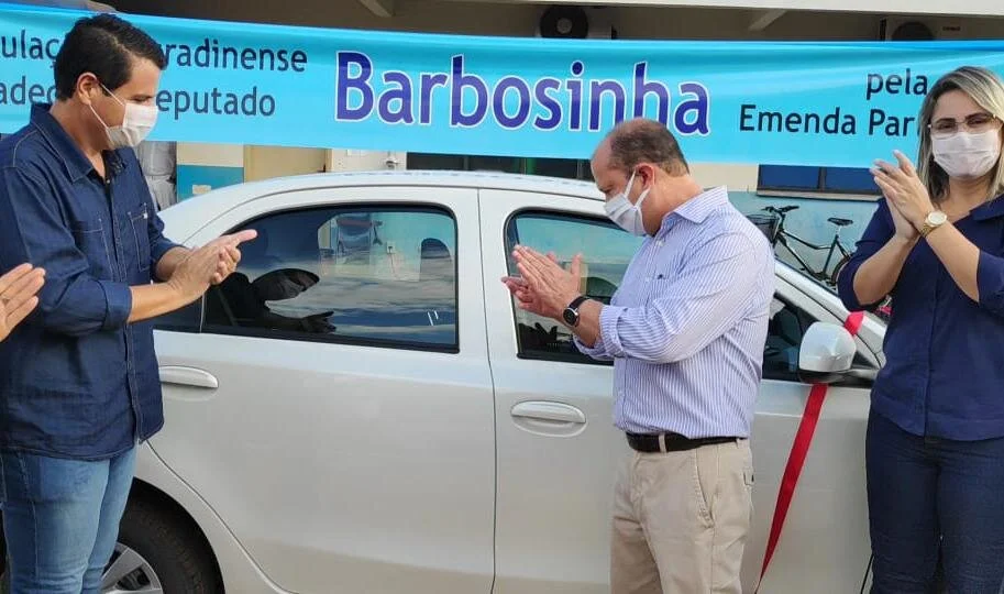 O deputado Barbosinha (DEM) participou, na tarde desta quarta-feira (13), em Douradina, da entrega oficial de um veículo Ethios, adquirido com recursos de emenda parlamentar de R$ 40 mil, destinada pelo mandato dele e contrapartida do Município, a pedido do prefeito Jean Fogaça e da secretária municipal de Saúde, Ângela Marques Rosa. O veículo vai atender o deslocamento de pacientes do Município nas viagens para tratamento oncológico em Barretos-SP e em Curitiba-PR.
