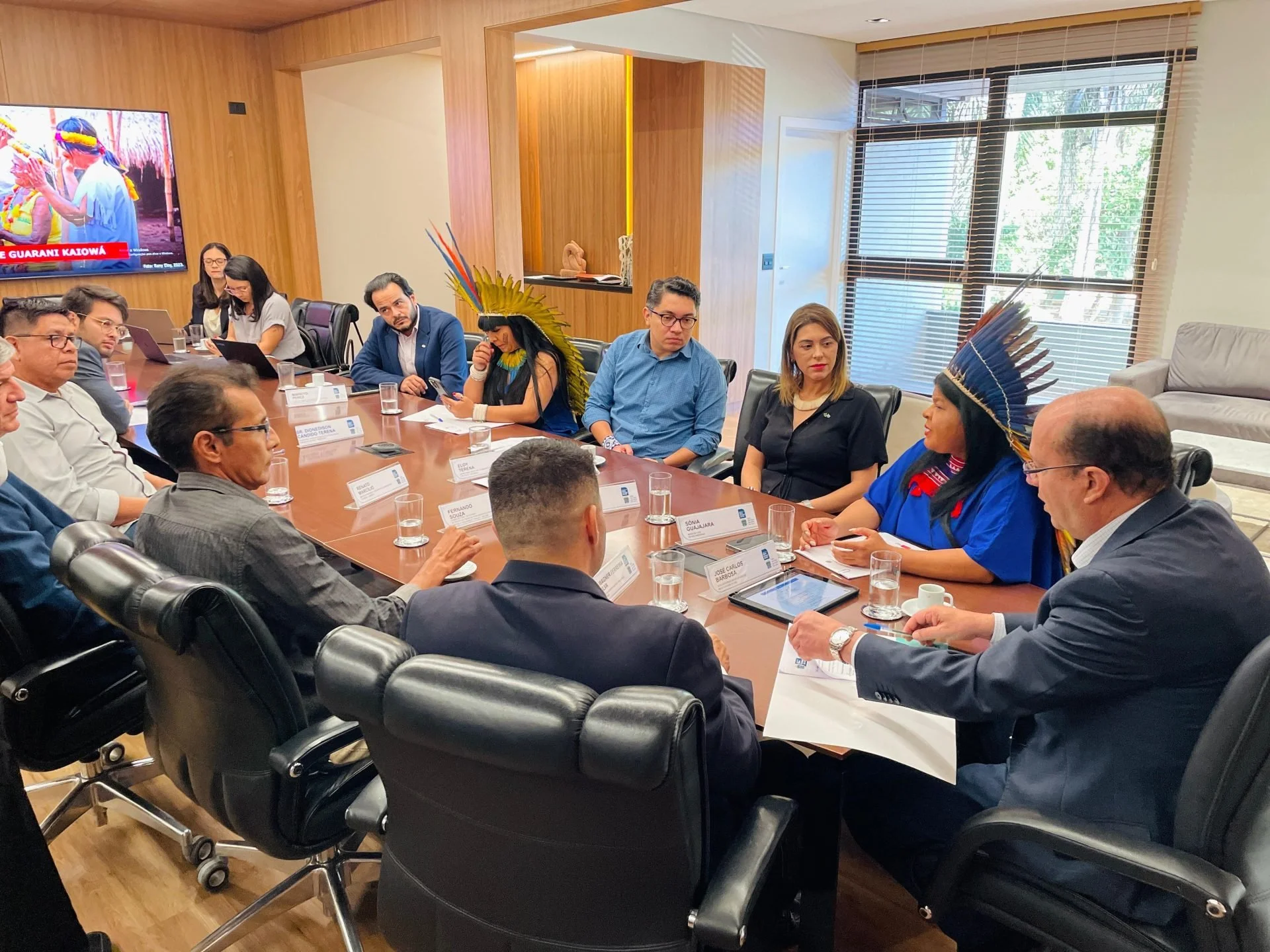 O ato de assinatura reuniu também o subsecretário de políticas públicas para os Povos Originários, Fernando Souza, o secretário-executivo de Segurança Pública, Wagner Ferreira da Silva; o diretor-presidente da Sanesul, Renato Marcílio da Silva; o secretário nacional de direitos territoriais indígenas, Marcos Kaingang; o chefe de gabinete da secretaria-executiva, Elaine Labes; e Dionedison Candido, da Coordenadoria de Povos Originários e Comunidades Tradicionais.