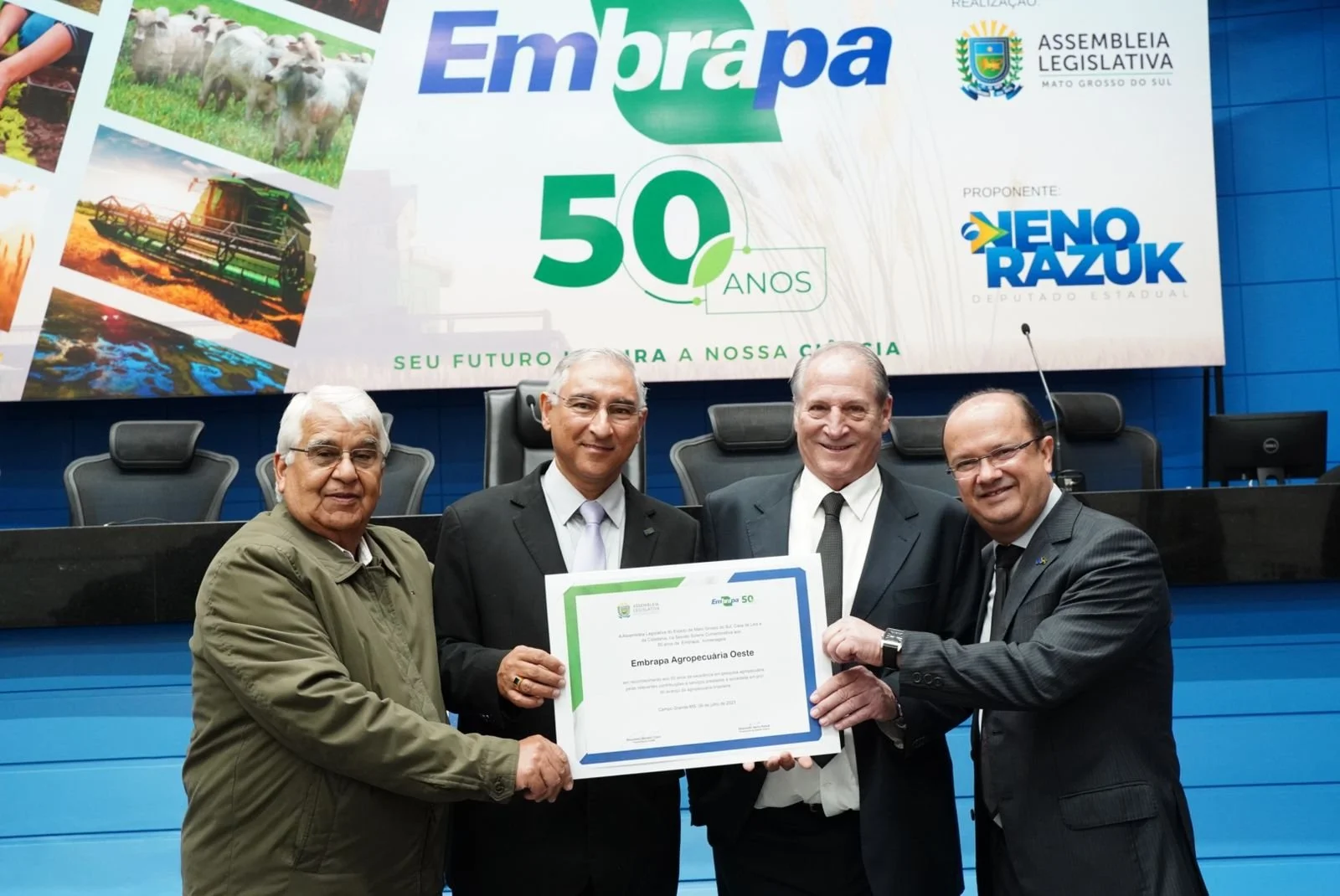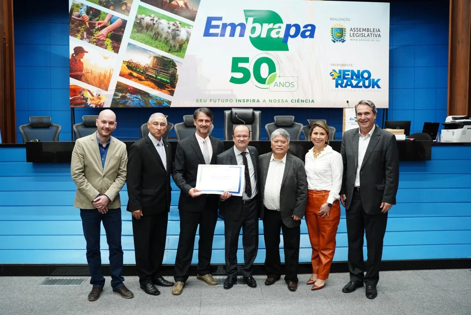Parceira de longa data do Governo de Mato Grosso do Sul, a Empresa Brasileira de Pesquisa Agropecuária (Embrapa) recebeu, na noite desta quinta-feira (6), homenagem na Assembleia Legislativa pelo seu cinquentenário.