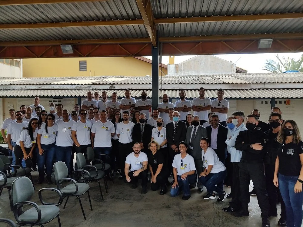 Formandos do curso da Agepen, com o secretário da Sejusp, Antônio Carlos Videira, na Capital