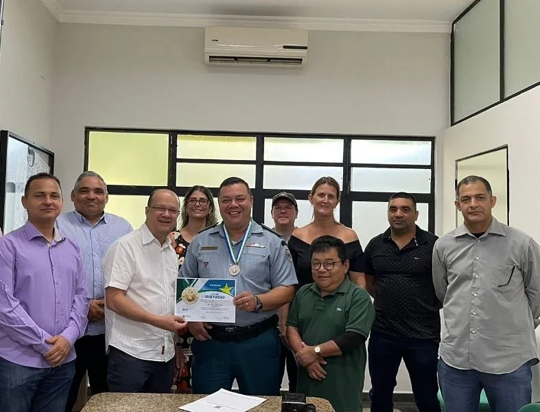 O vice-governador Barbosinha entregou, em Dourados, ao Subtenente da PM (Polícia Militar), atualmente lotado na Ajudância Geral da PMMS, Júlio César Teles Arguelho, a comenda e a medalha ‘Coronel Adib Massad’, indicadas por ele ainda durante o mandato como deputado estadual, em honra aos serviços prestados à corporação onde o policial serve desde 1998.