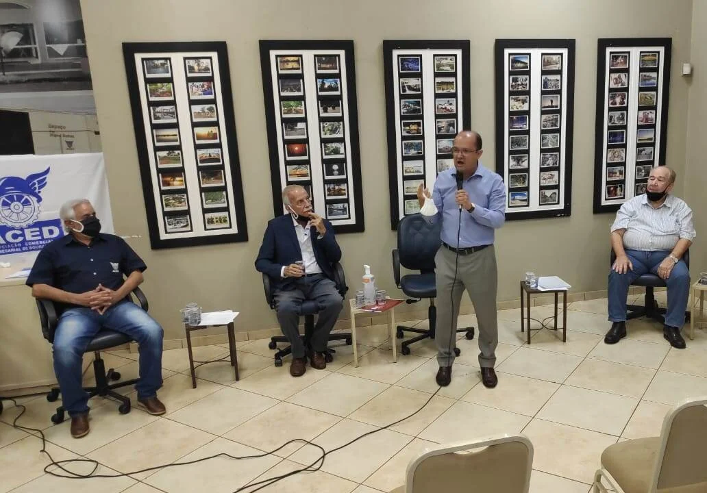 Convidado pela ACED de Dourados, Barbosinha (DEM) e o presidente da Faems (a Federação das Associações Comerciais de Mato Grosso do Sul), Alfredo Zamluti Junior, debateram taxas cartorárias com lideranças do Estado.